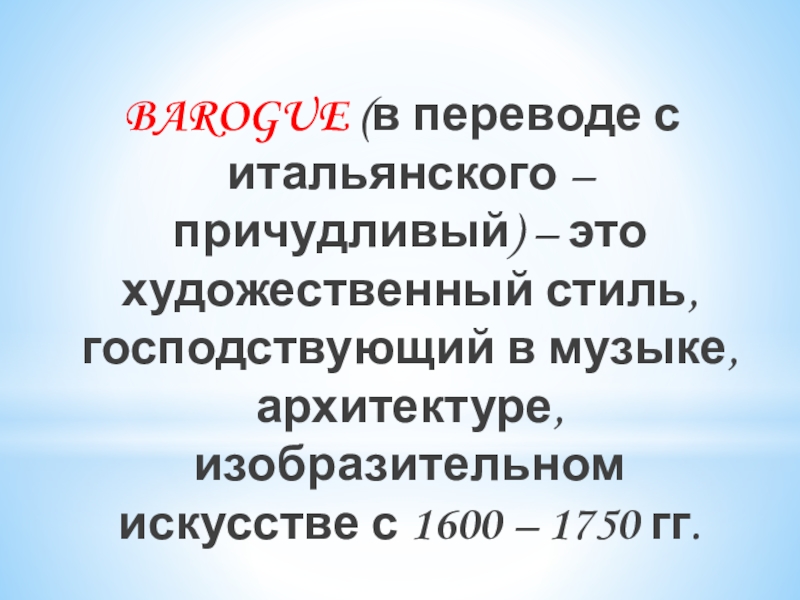BAROGUE (в переводе с итальянского – причудливый) – это художественный стиль, господствующий в музыке, архитектуре, изобразительном искусстве