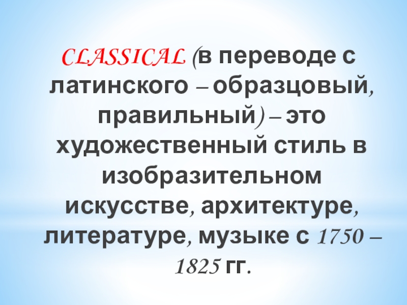 CLASSICAL (в переводе с латинского – образцовый, правильный) – это художественный стиль в изобразительном искусстве, архитектуре, литературе,