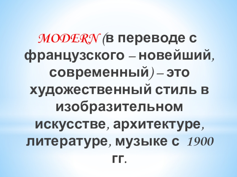 MODERN (в переводе с французского – новейший, современный) – это художественный стиль в изобразительном искусстве, архитектуре, литературе,