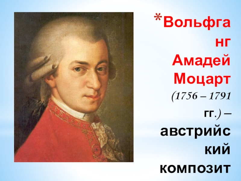 Слайд 11Вольфганг Амадей Моцарт (1756 – 1791 гг.) – австрийский композитор.