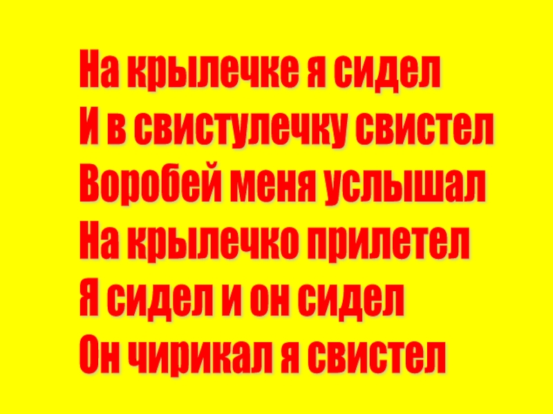 На крылечке я сидел  И в свистулечку свистел  Воробей меня услышал  На крылечко прилетел