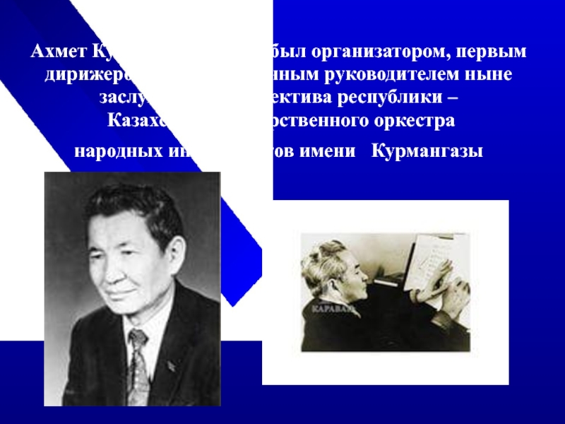 Слайд 29Ахмет Куанович Жубанов был организатором, первым дирижером и художественным руководителем ныне