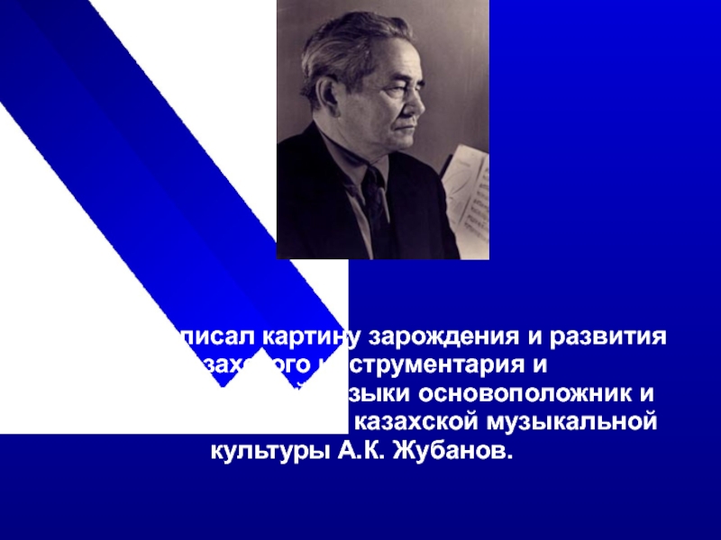 картину зарождения и развития казахского инструментария и инструментальной музыки основоположник и выдающийся деятель казахской музыкальной культуры А.К. Жубанов.