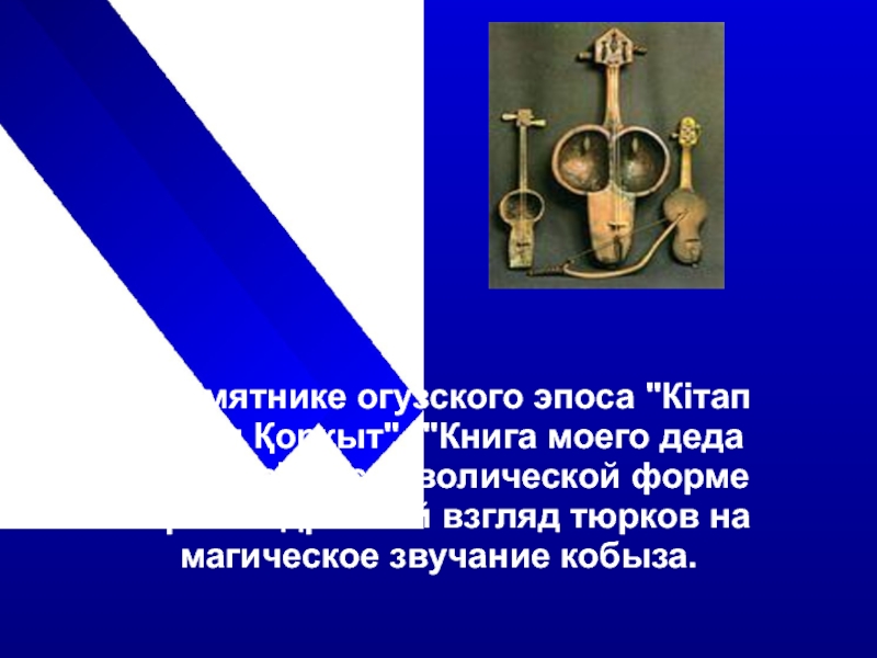 дедем Қорқыт" ("Книга моего деда Коркыта") в символической форме отражен древний взгляд тюрков на магическое звучание кобыза.