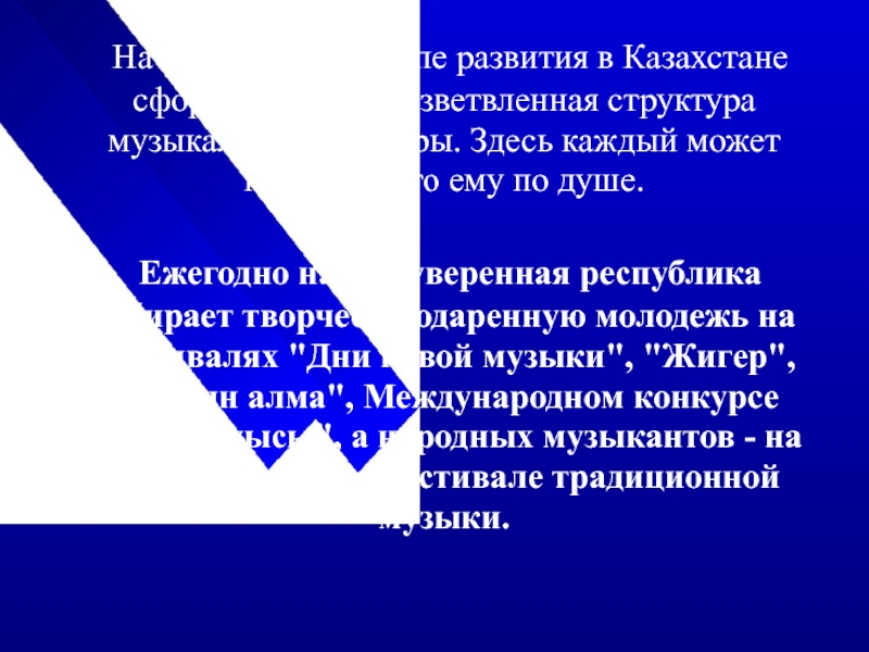 Слайд 31 На современном этапе развития в Казахстане сформировалась разветвленная структура музыкальной