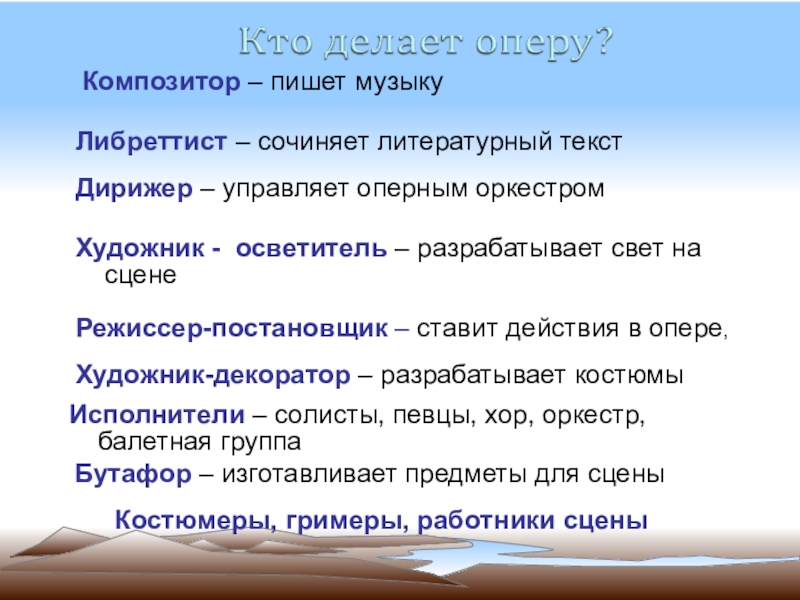 Исполнители – солисты, певцы, хор, оркестр, балетная группа