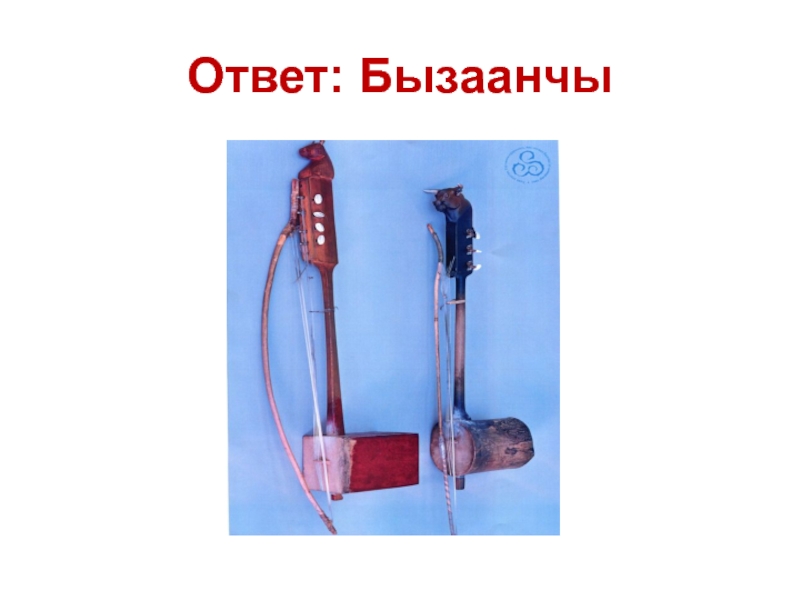 Слайд 10Бызаанчы - смычковый инструмент. Название этого инструмента произошло от «Бызаа унну»
