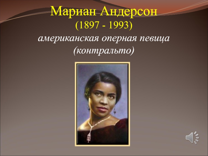 Слайд 17Мариан Андерсон (1897 - 1993) американская оперная певица (контральто)