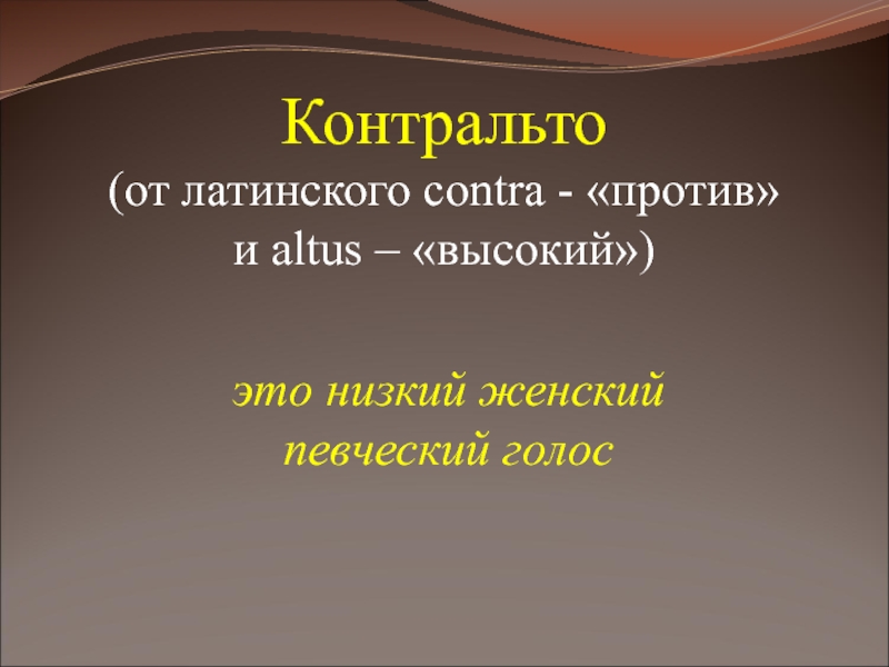 Контральто (от латинского contra - «против» и altus – «высокий»)