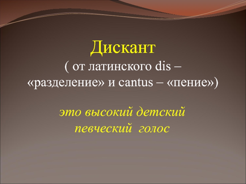 Слайд 24Дискант ( от латинского dis – «разделение» и cantus – «пение»)