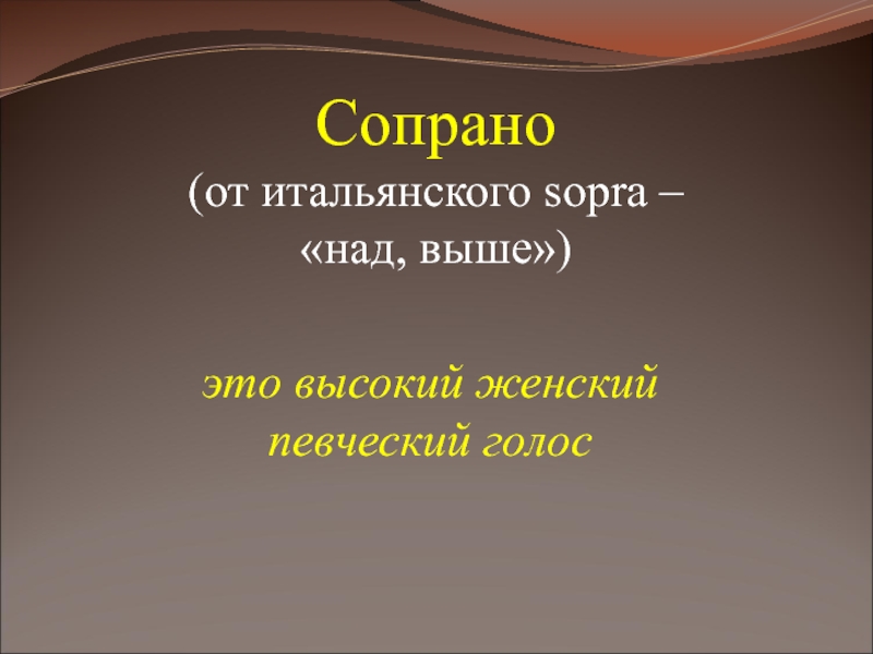 Слайд 10Сопрано (от итальянского sopra – «над, выше»)