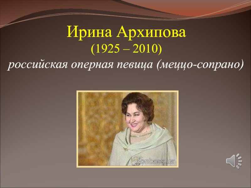 Слайд 20Ирина Архипова (1925 – 2010) российская оперная певица (меццо-сопрано)