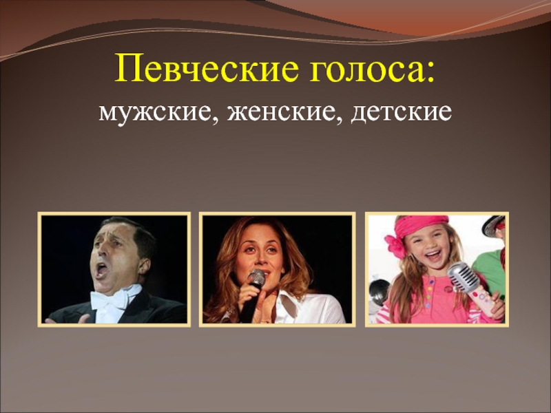 Слайд 5Мужские голоса: тенор, баритон, бас