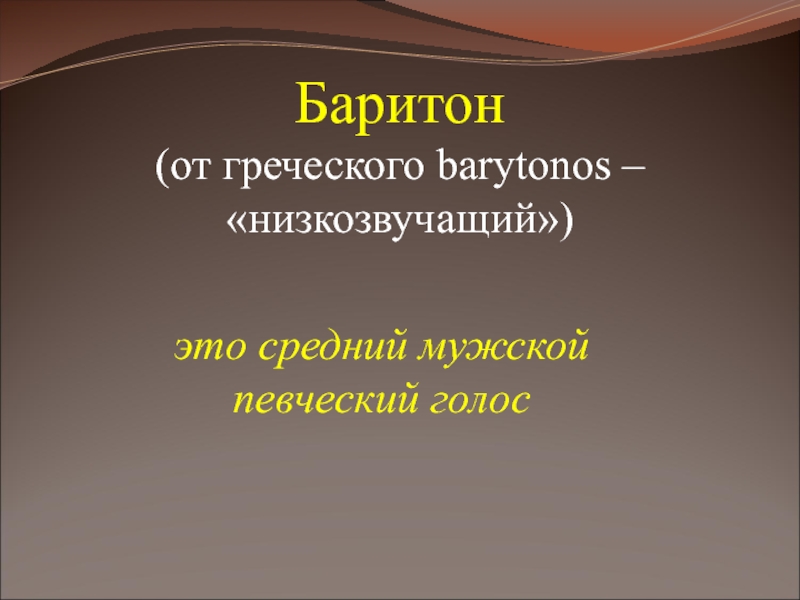 Слайд 7Баритон (от греческого barytonos – «низкозвучащий»)