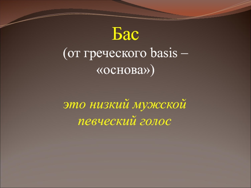 Бас (от греческого basis – «основа»)  это низкий мужской певческий голос