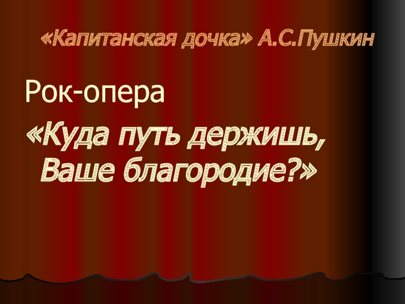 «Капитанская дочка» А.С.ПушкинРок-опера «Куда путь держишь, Ваше благородие?»