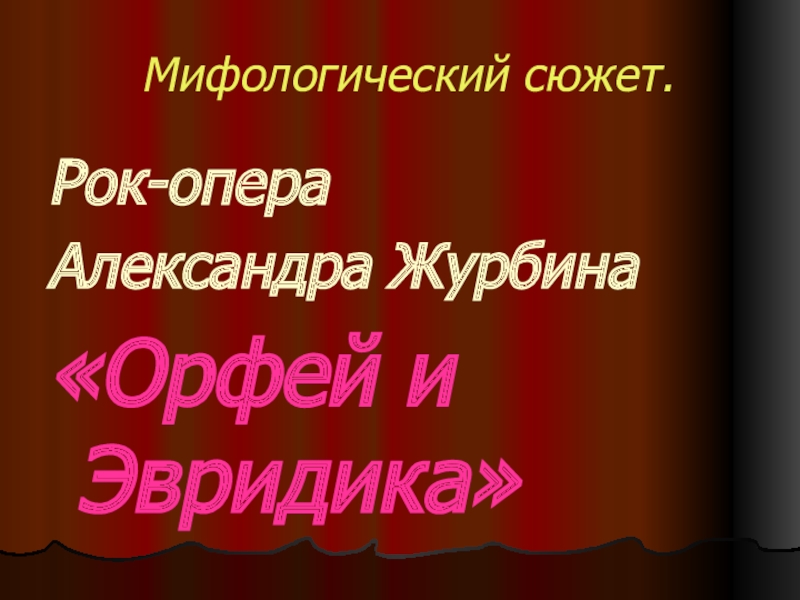 Мифологический сюжет.Рок-опера Александра Журбина«Орфей и Эвридика»