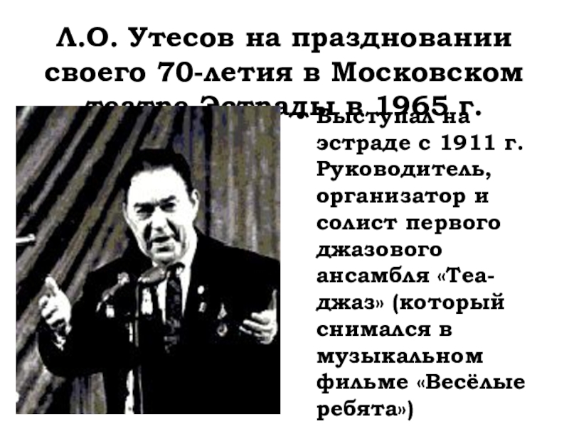 Выступал на эстраде с 1911 г. Руководитель, организатор и солист первого джазового ансамбля «Теа-джаз» (который снимался в музыкальном фильме «Весёлые ребята»)