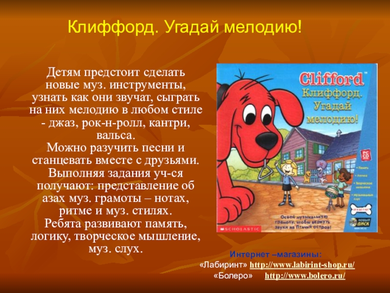 Дает представление о различных муз. стилях и жанрах (джаз, рок, рэп);