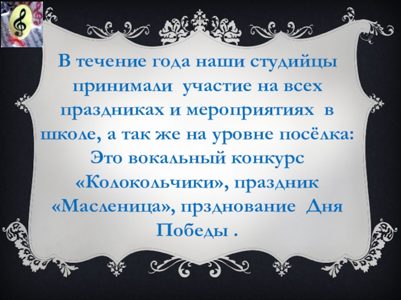 Слайд 5В течение года наши студийцы принимали участие на всех праздниках и