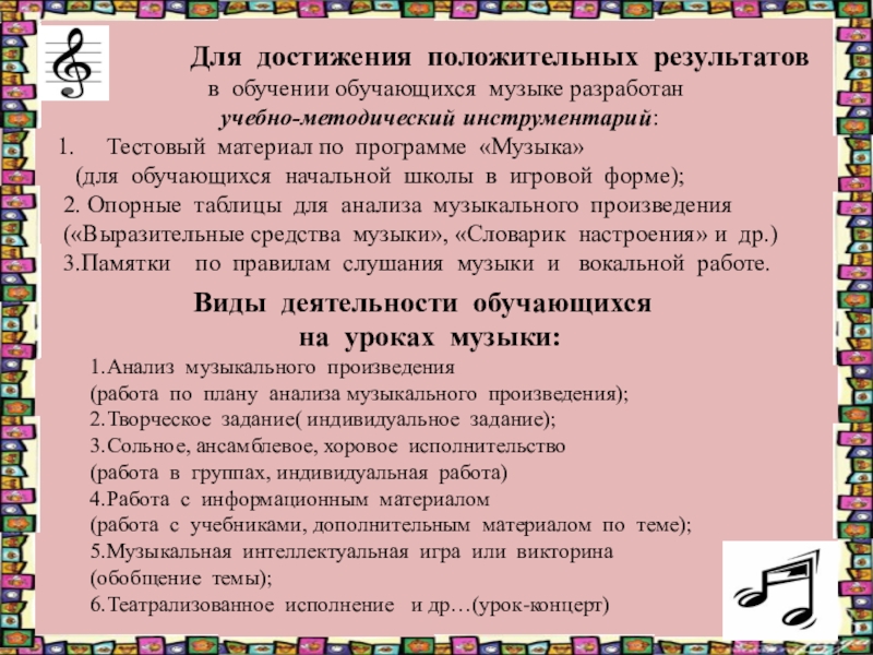 2.Положительная динамика музыкальной деятельности обучающихся.