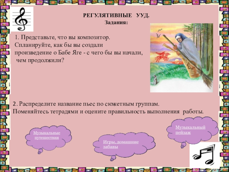 В результате работы над предложенными заданиями на уроках музыки у учащихся будут формироваться универсальные учебные действия: