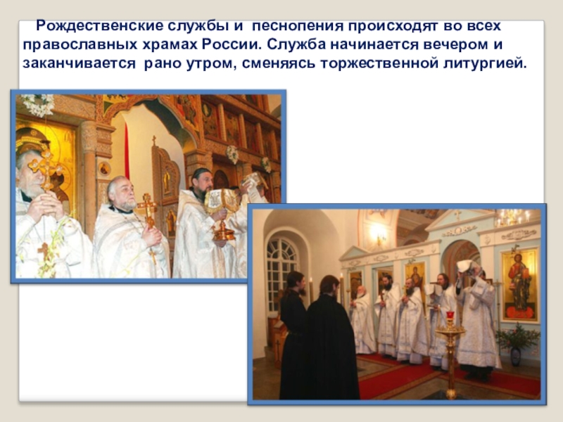 Слайд 13 Рождественские службы и песнопения происходят во всех