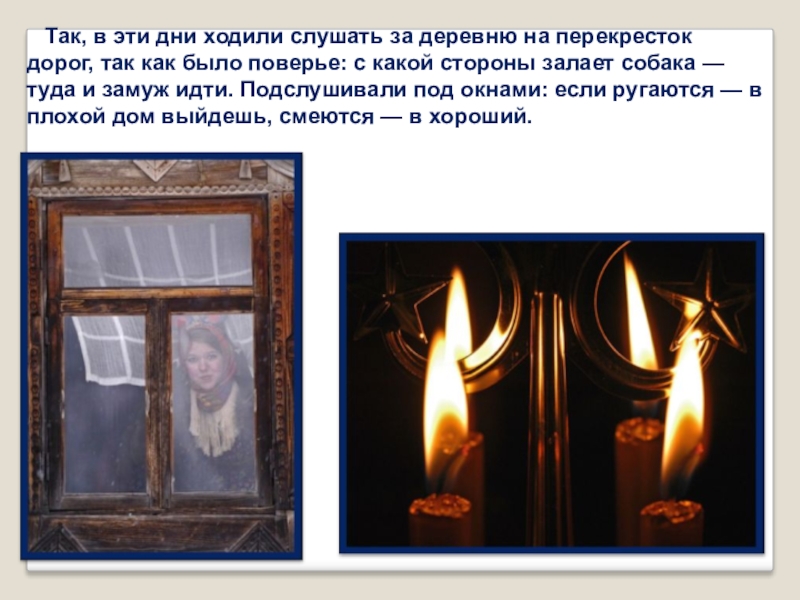 Слайд 9 Так, в эти дни ходили слушать за деревню на