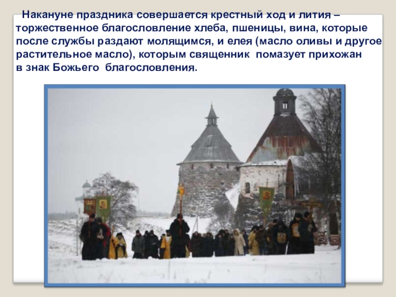 Слайд 14 Накануне праздника совершается крестный ход и лития –