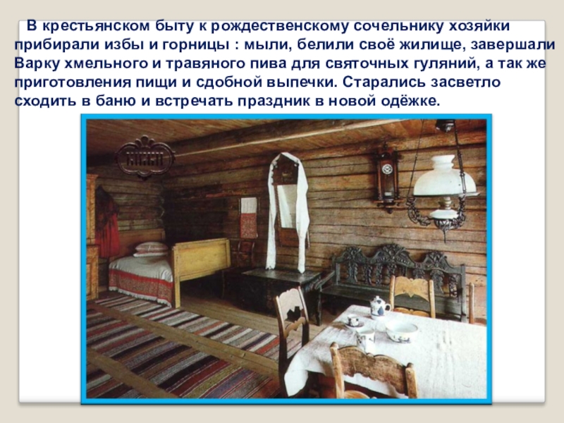 Слайд 3 В крестьянском быту к рождественскому сочельнику хозяйки