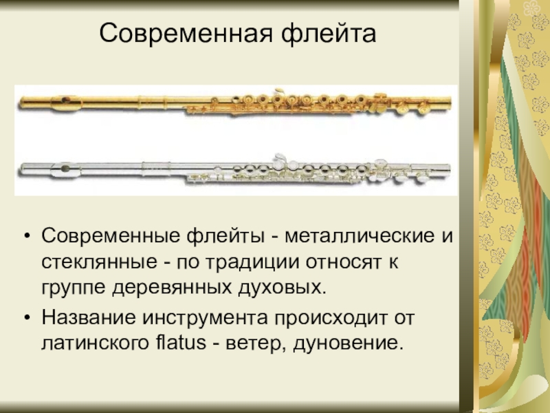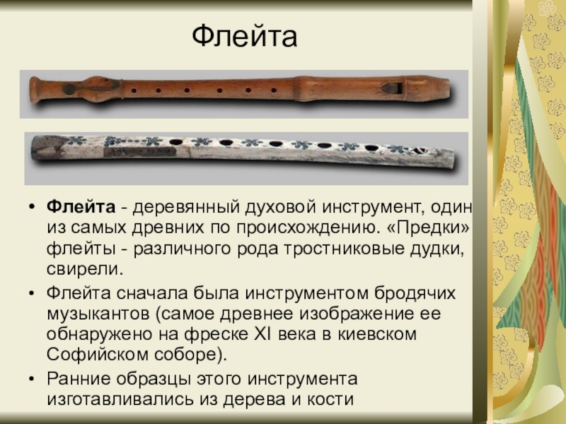 Флейта - деревянный духовой инструмент, один из самых древних по происхождению.