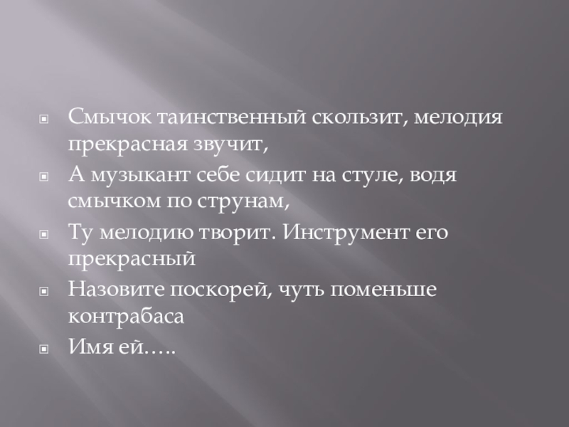 Слайд 6Смычок таинственный скользит, мелодия прекрасная звучит,