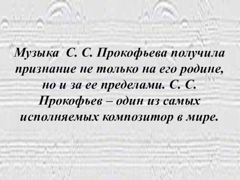 Слайд 10Музыка С. С. Прокофьева получила признание не только на его родине,