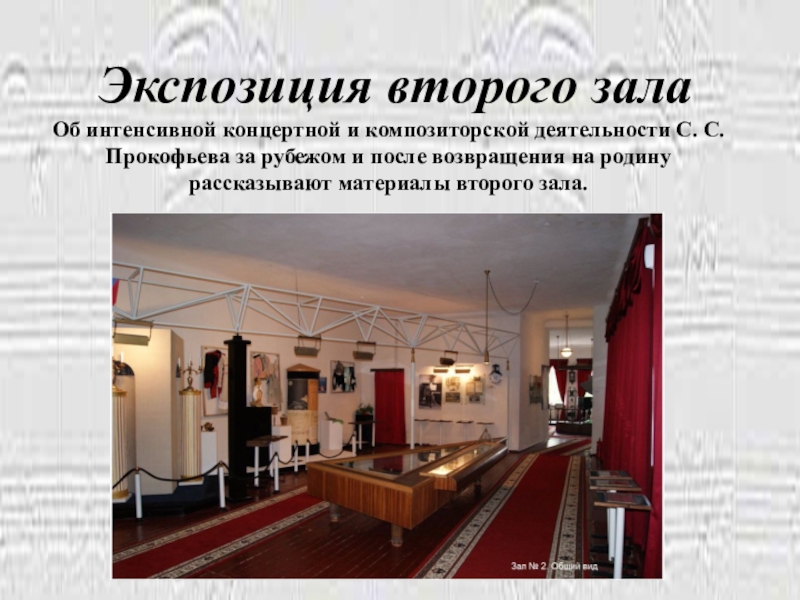 Слайд 6 Экспозиция второго зала Об интенсивной концертной и композиторской деятельности С. С.