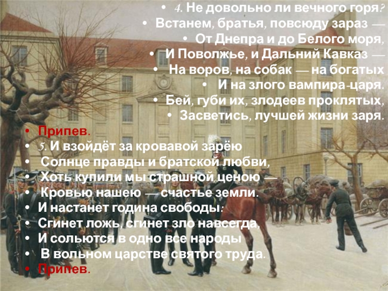 Текст написал в трагические дни после разгрома Парижской коммуны французский поэт