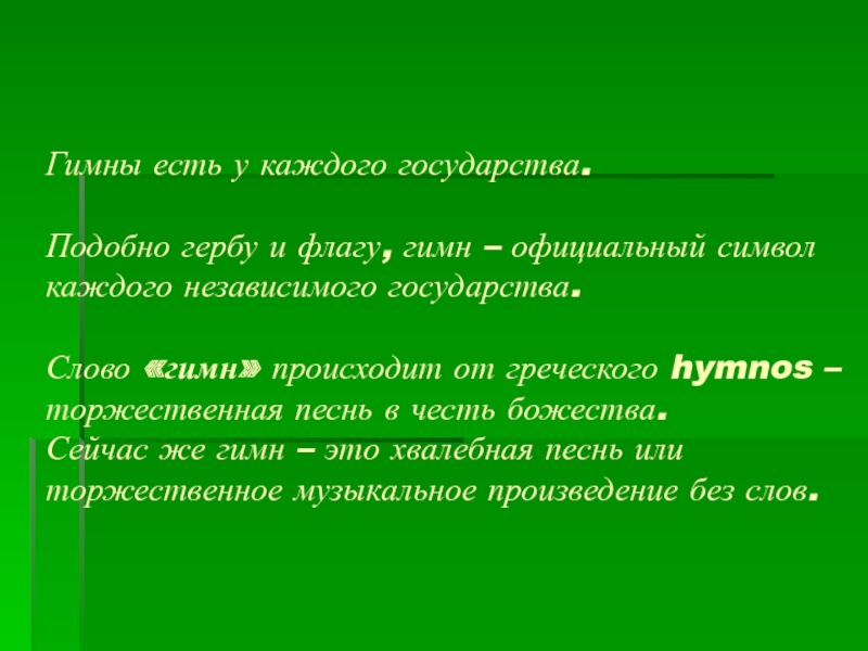 Слово «гимн» происходит от греческого hymnos – торжественная песнь в честь божества.