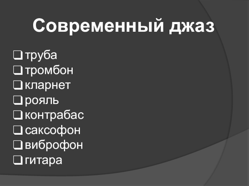 Современный джазтрубатромбонкларнетрояльконтрабассаксофонвиброфонгитара
