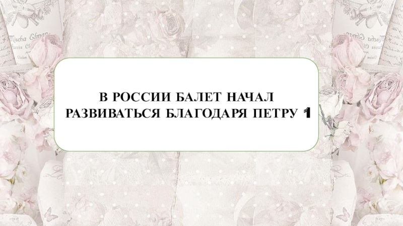 В РОССИИ БАЛЕТ НАЧАЛ РАЗВИВАТЬСЯ БЛАГОДАРЯ ПЕТРУ 1