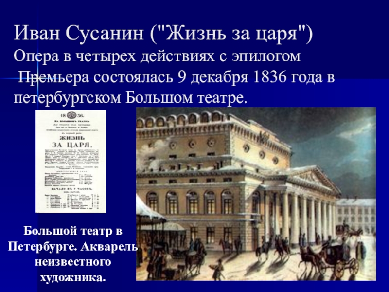 Большой театр в Петербурге. Акварель неизвестного художника.