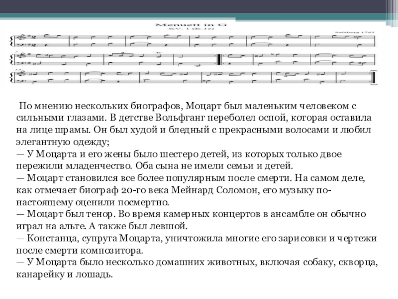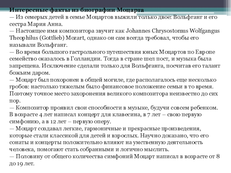 Слайд 4Интересные факты из биографии Моцарта