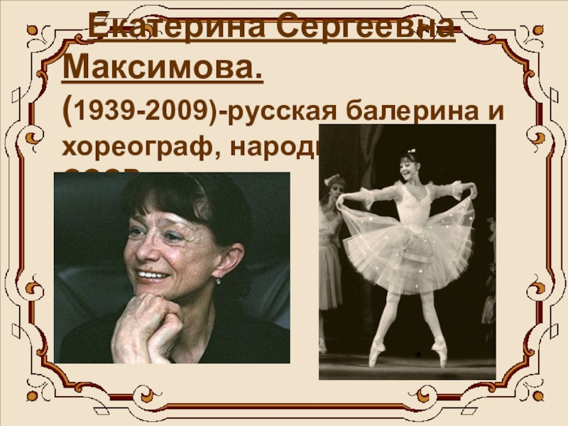 (1939-2009)-русская балерина и хореограф, народная артистка СССР.