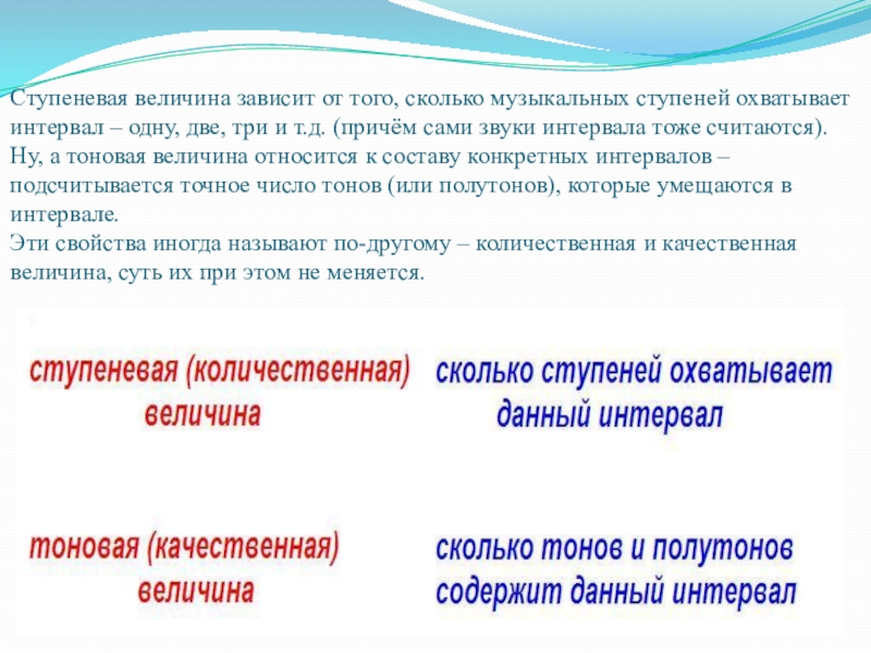 название определяется свойствами интервала. В зависимости от того, сколько ступеней охватывает интервал (то есть от ступеневой или количественной величины), даются названия: