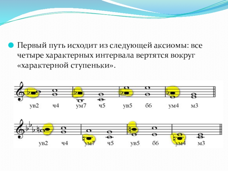 Слайд 17Первый путь исходит из следующей аксиомы: все четыре характерных интервала вертятся