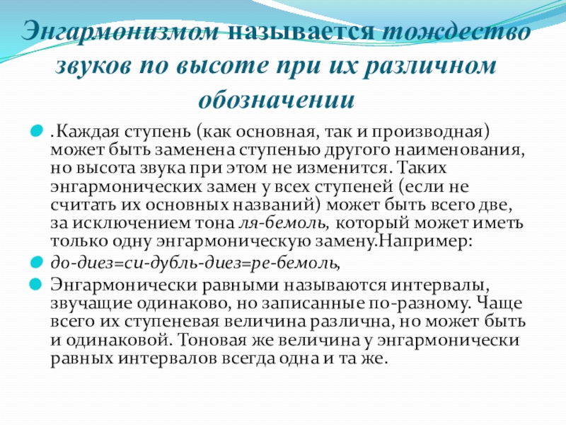 Слайд 11Энгармонизмом называется тождество звуков по высоте при их различном обозначении