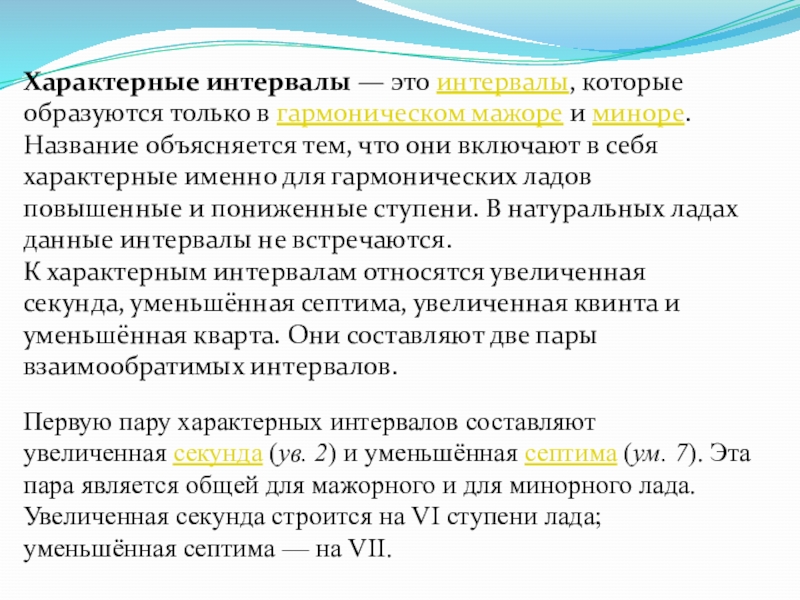Слайд 14Характерные интервалы — это интервалы, которые образуются только в гармоническом мажоре и миноре.