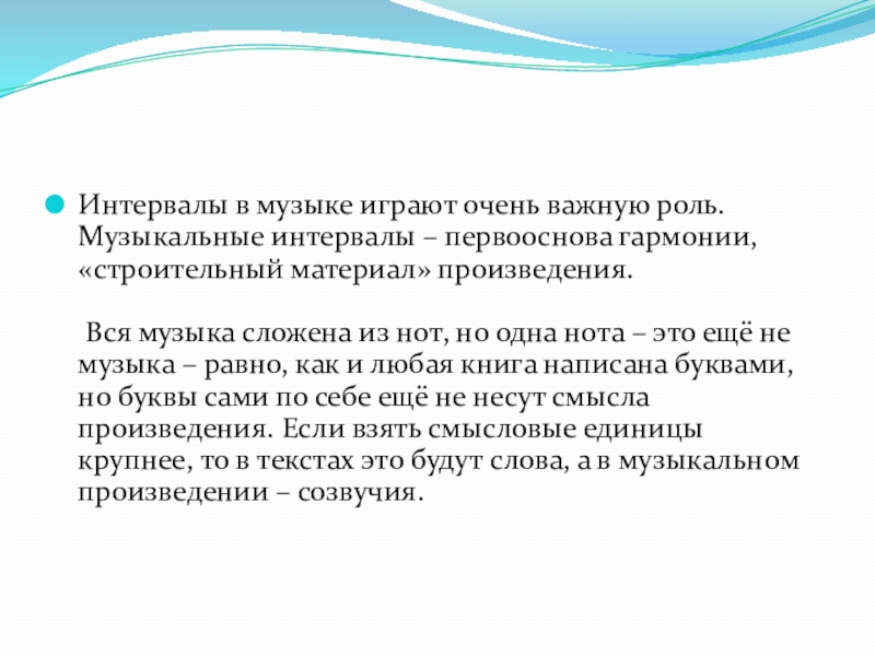 Слайд 2Интервалы в музыке играют очень важную роль. Музыкальные интервалы – первооснова