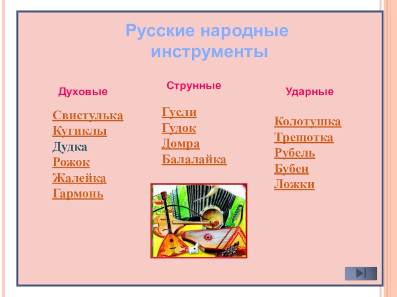 Лишь в конце века руководитель первого оркестра народных инструментов музыкант-исследователь Василий Андреев проделал труднейшую кропотливую работу по восстановлению и усовершенствованию русских народных инструментов.