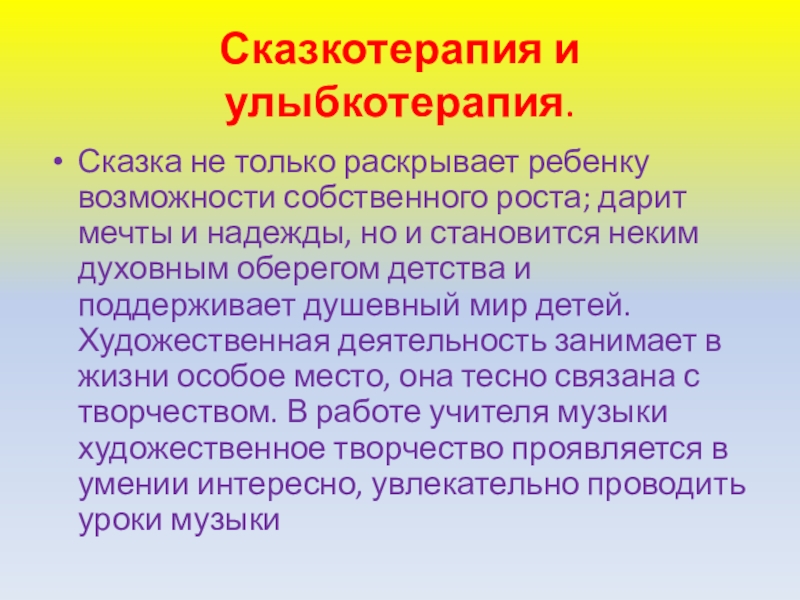 Слайд 36Сказкотерапия и улыбкотерапия.
