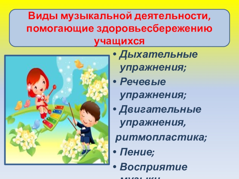 Виды музыкальной деятельности, помогающие здоровьесбережению учащихся