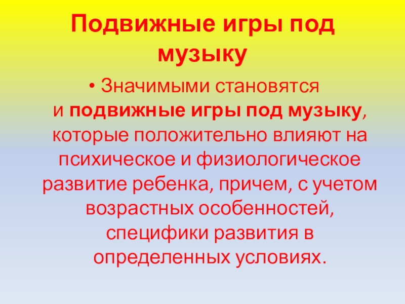 Слайд 12игры под музыку, которые положительно влияют на психическое и физиологическое развитие
